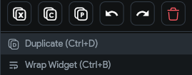 ⇨ Padding : 위젯을 중심으로 여백 추가(옵션 복사 후 다른 위젯에도 적용 가능), 보통 8의 배수 값 입력