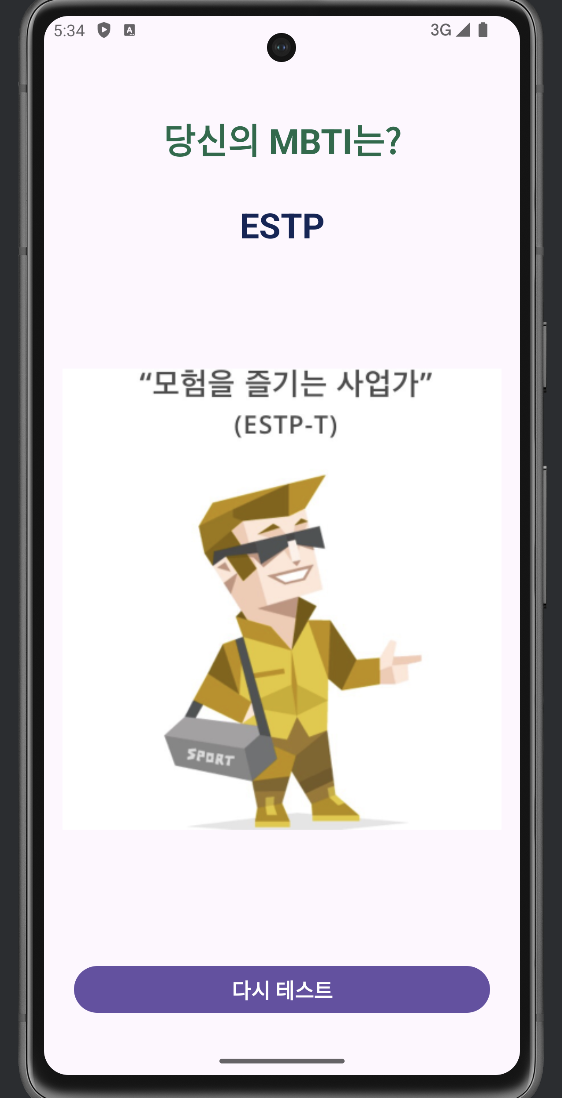 어제 마무리하지 못한 MBTI 테스트를 마저 작업하였다.